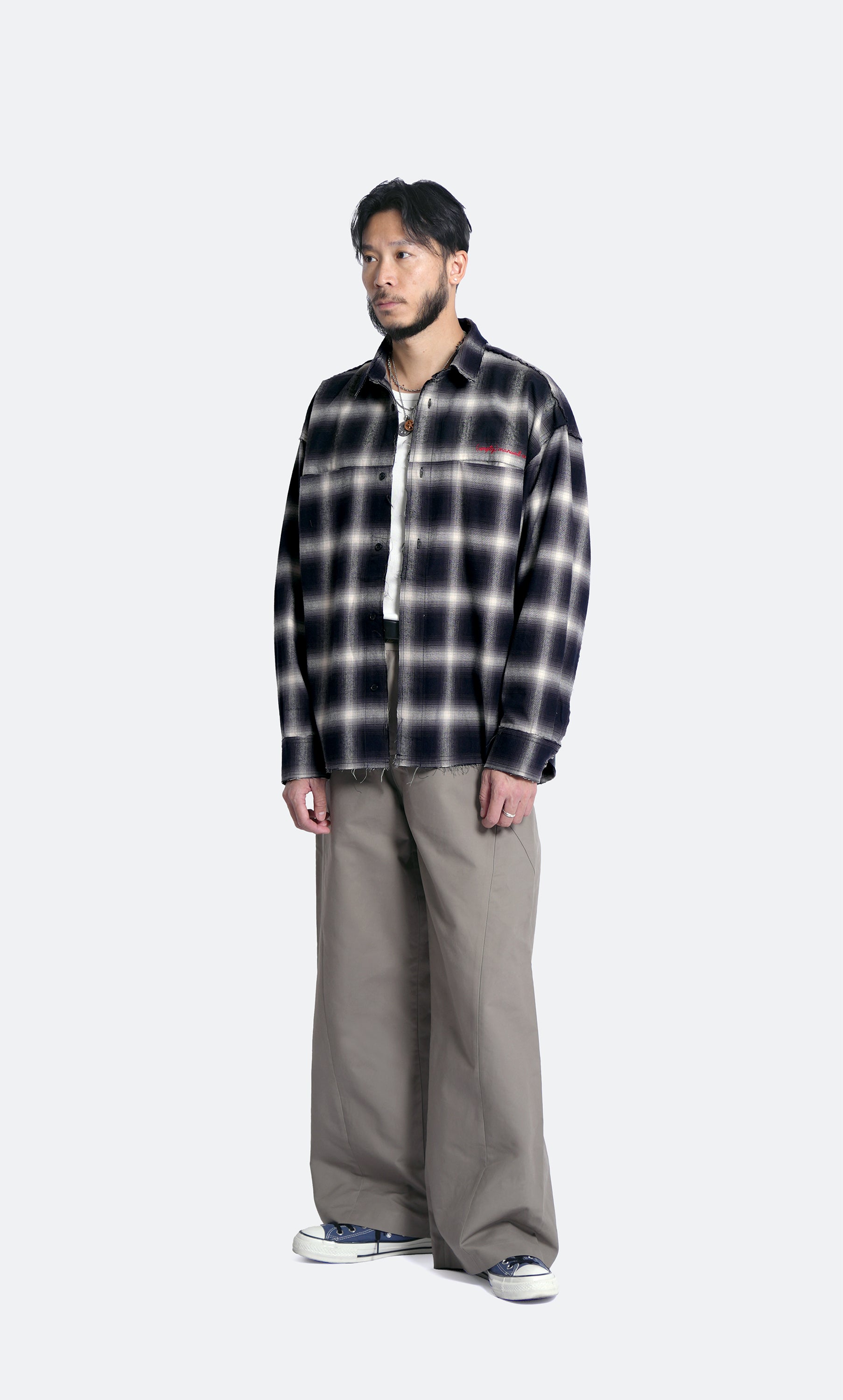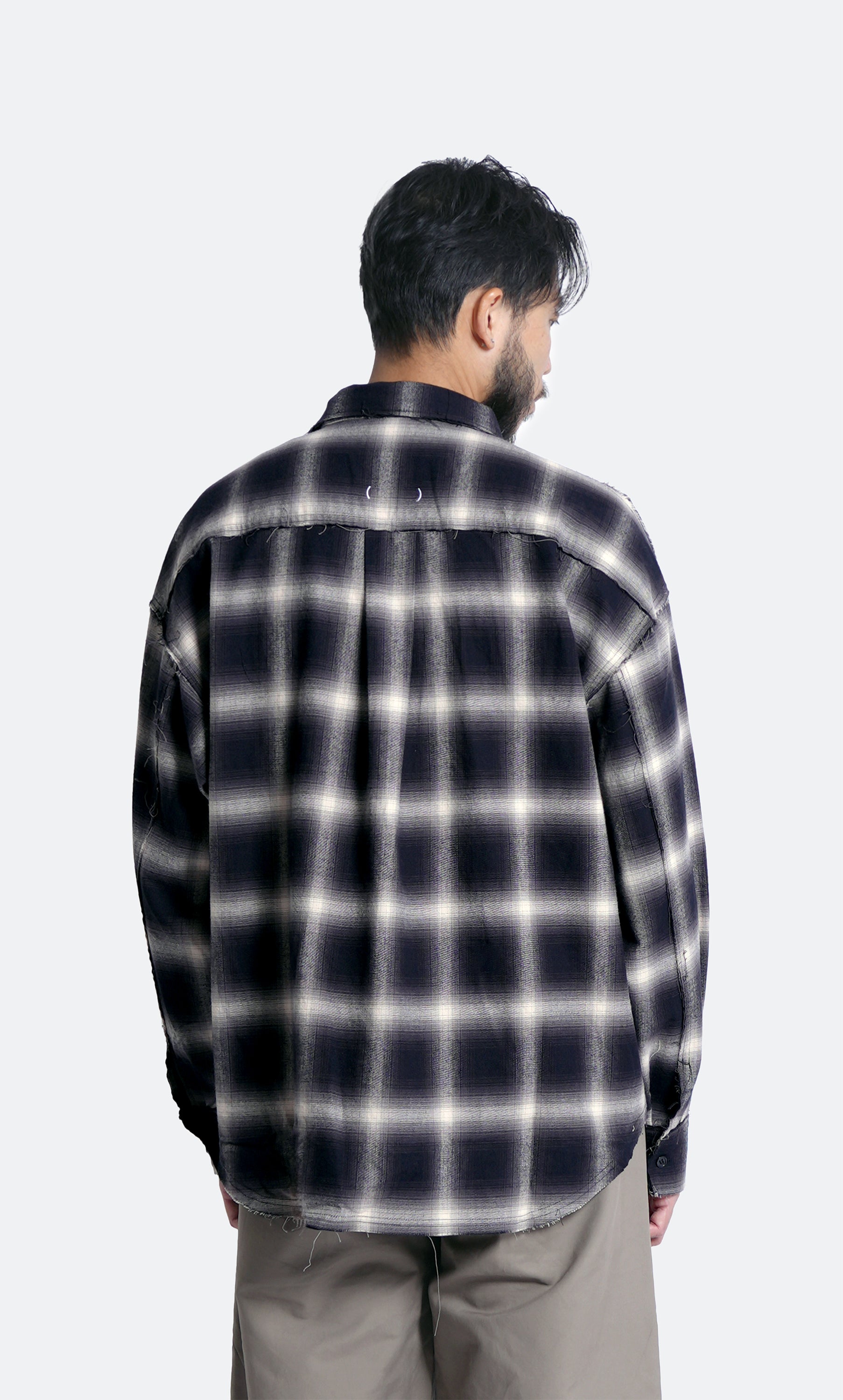distressed ombre check shirt - black & white